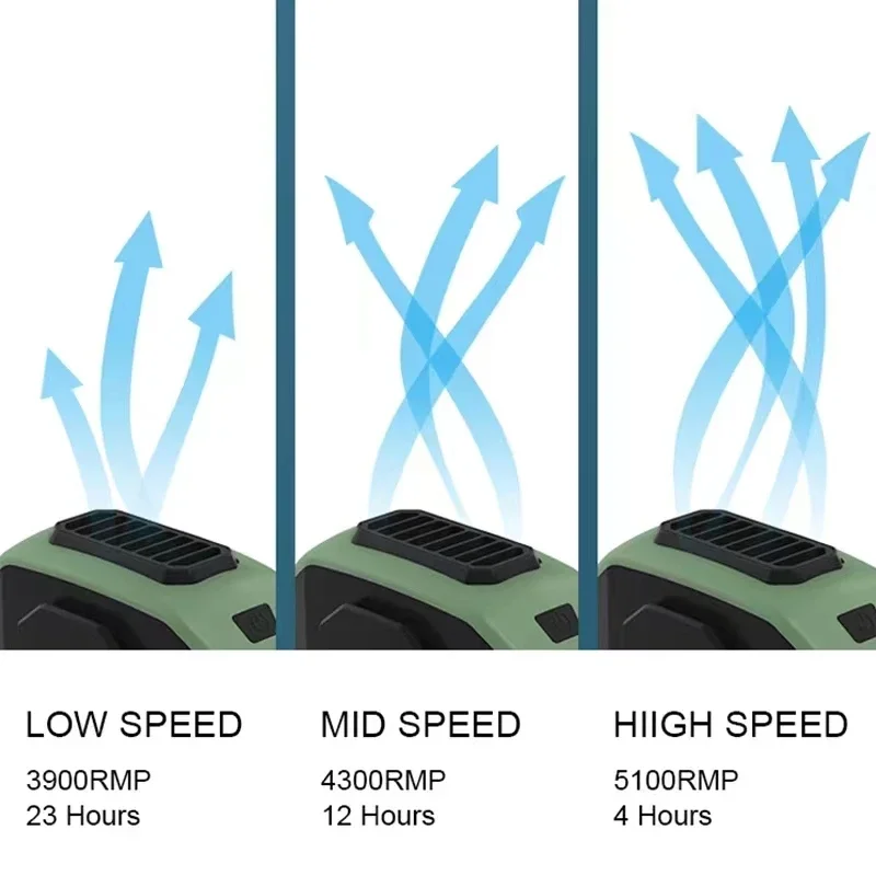 With multi-speed settings and a high-speed brushless motor, the upgraded 5-blade turbo design spins up to 6600 RPM, pushing airflow at up to 20 ft/s. Whether you're in a hot kitchen or on a sun-scorched trail, it wipes out body heat in seconds.