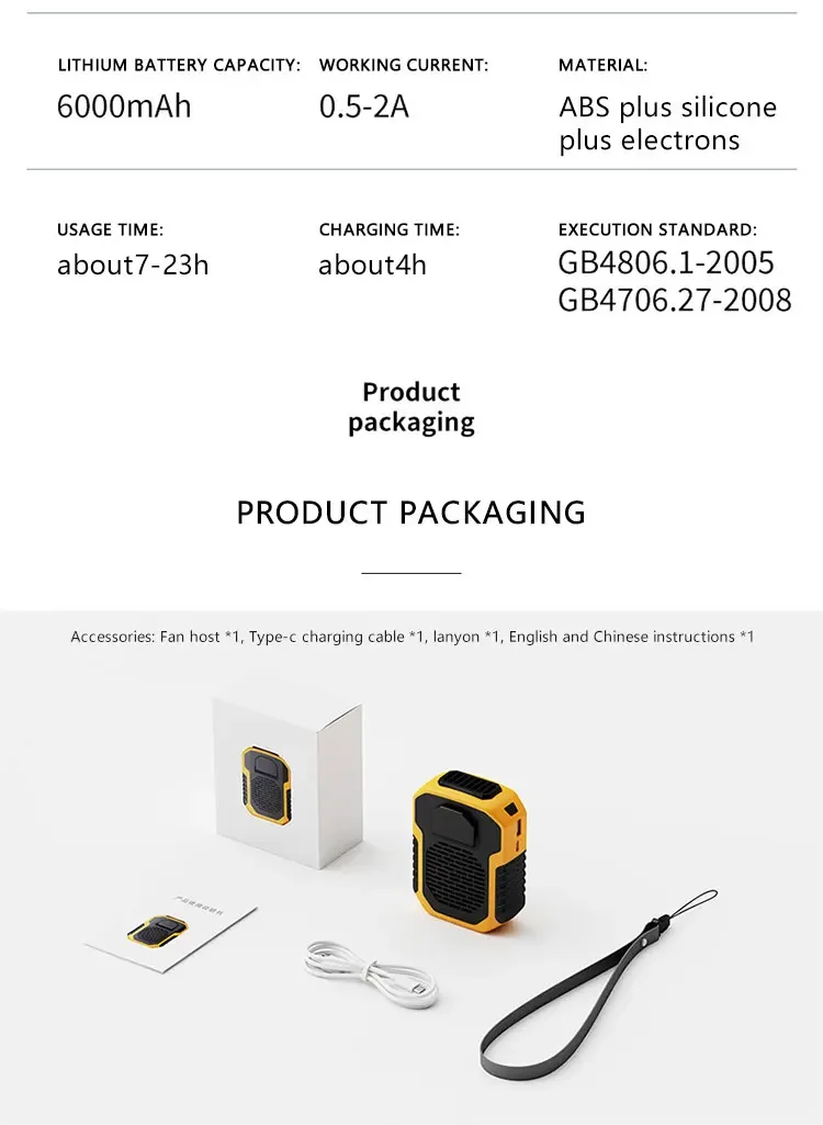 - Long Battery Life: With a 6000mAh battery, you can stay cool longer, whether youāre on a hike, at a sports event, or running errands on a hot day.